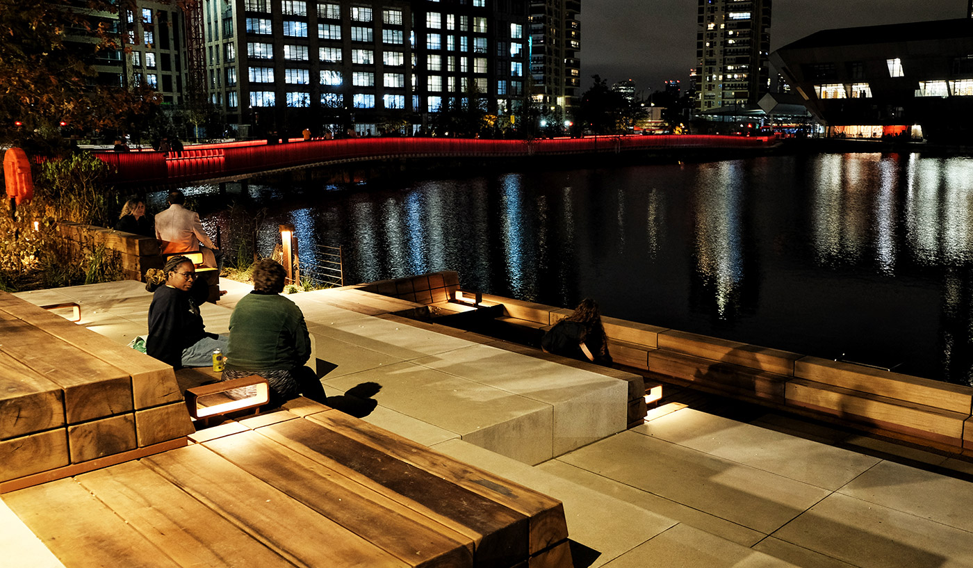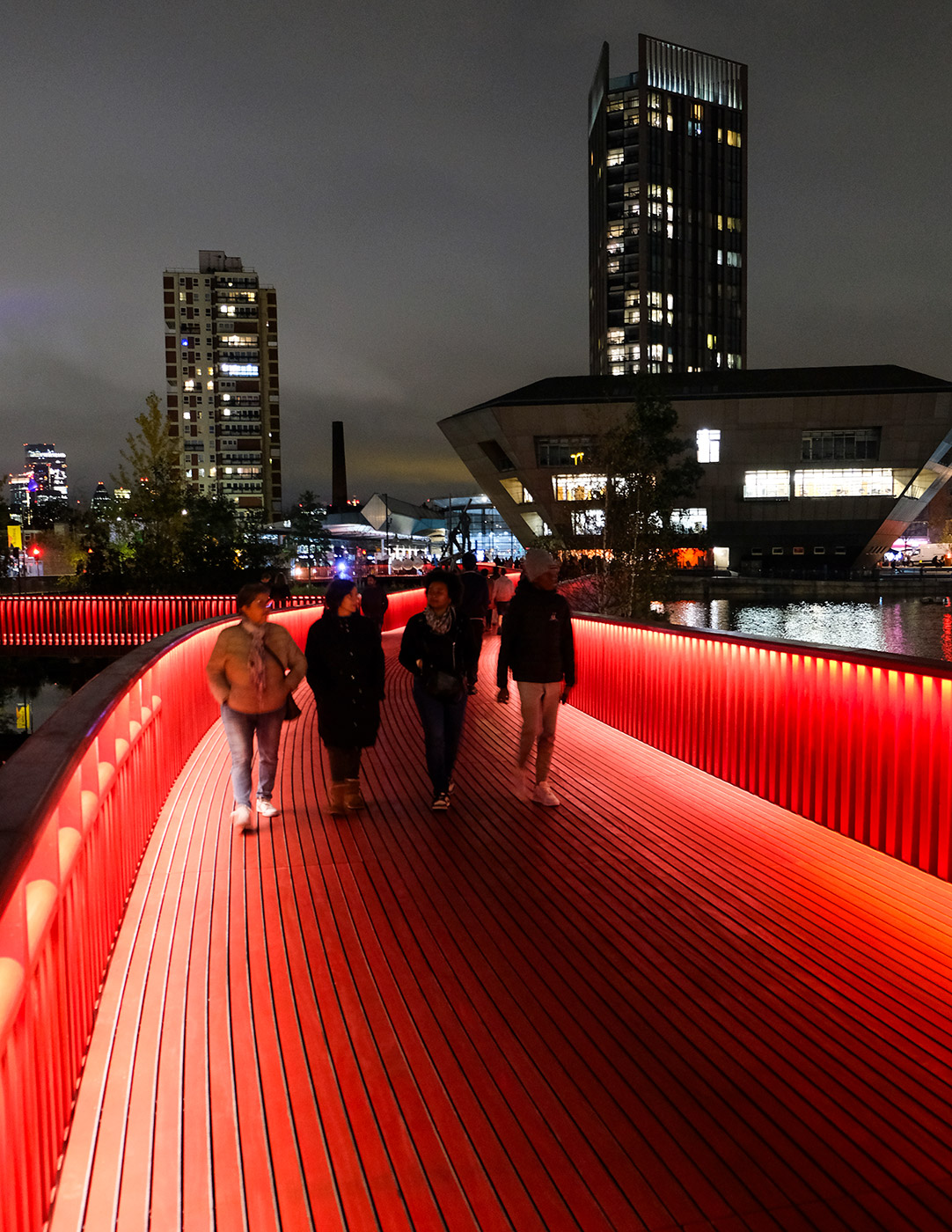The 170m steel-frame bridge, with its distinctive timber fins, is part of British Land’s Canada Water Masterplan project — a joint venture with AustralianSuper to redevelop 53 acres of Rotherhithe into a new, mixed-use urban centre.