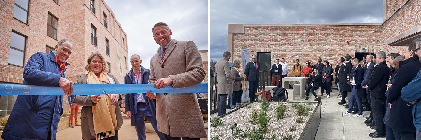 Left : Cllr Grace Williams cuts the ribbon, photo courtesy Pocket Living | Right : photo courtesy Gort Scott