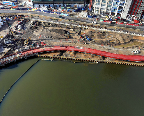 The Dock project lies at the heart of the masterplan. It includes the refurbished dock structure, the Southern Steps public space with a pavilion and dipping pond, the boardwalk and associated linking bridges, and several Sites of Importance for Nature Conservation (SINC). We provided structural, civil, geotechnical and geo-environmental engineering services and client monitoring (CMT).