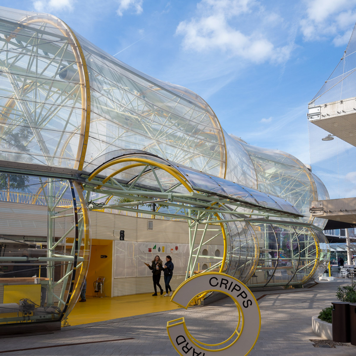 Greenwich Design District, adjacent to the Millennium Dome in London, includes a canteen that winds through the one hectare site, serving 16 diverse buildings designed especially for creatives.