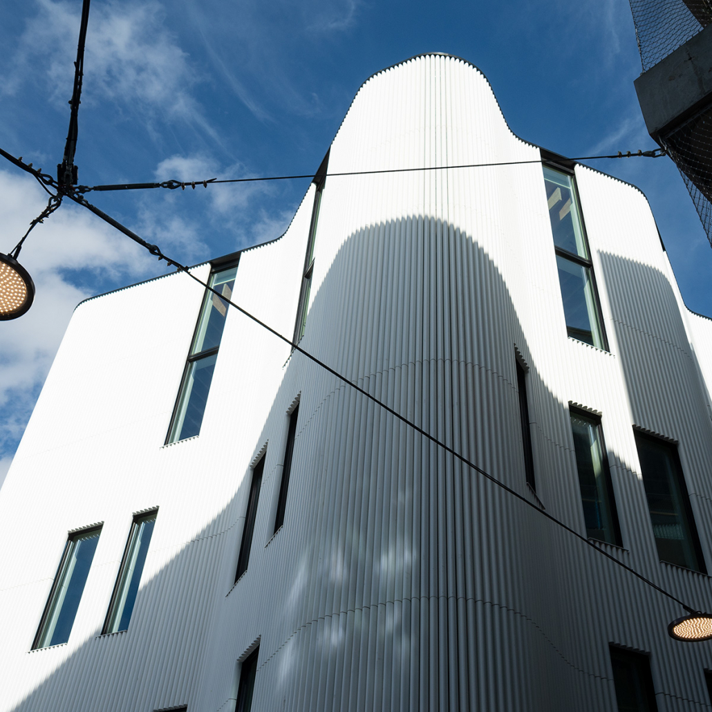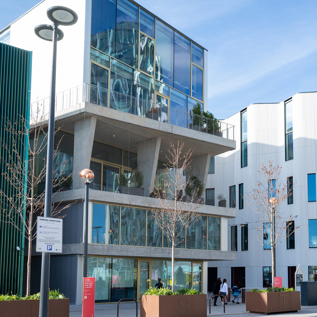 The 16 buildings range in height from 3 to 5 levels, except for the food market — a single-level steel structure clad in plastic polymer (ETFE) that winds through the district. As a group, the buildings bring unexpected design contrasts and exciting energy to the development. Rationalised structures have been developed that maintain this spirit as well as enabling economic construction, and all buildings were delivered ready for fit-out by the creatives using them.