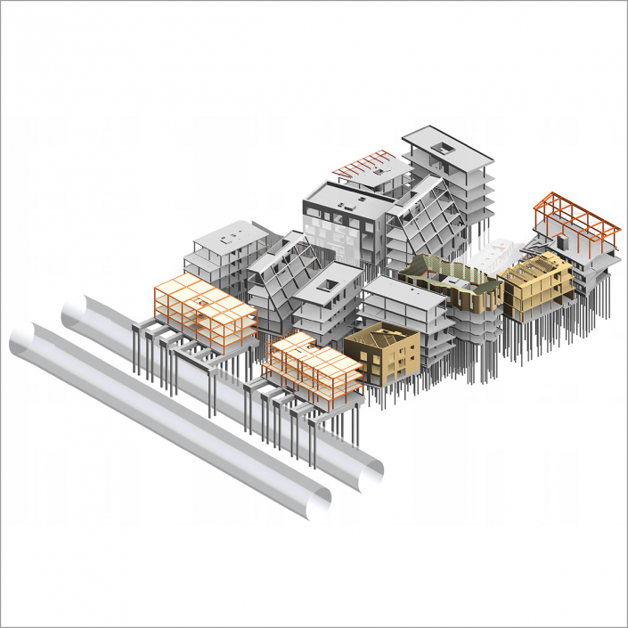 We provided civil and structural engineering, and geotechnical engineering with collaborator Wood Thilsted, plus building services and sustainability through associate practices Skelly & Couch and Scotch Partners respectively. The buildings were designed by HNNA (lead), 6a Architects, Architecture 00, Barozzi Veiga, David Kohn Architects, Adam Kahn Architects, Mole Architects and Selgas Cano, with landscaping by Schulze+Grassov.