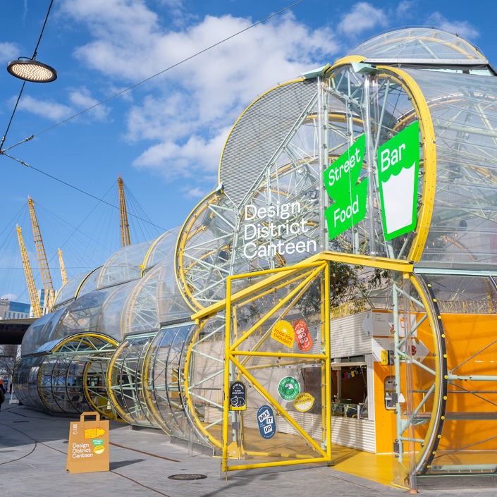 London’s first purpose-built design district opened on the Greenwich Peninsula in 2021 — 16 different buildings by eight architects providing affordable workshops and studio spaces — with all engineering by Whitby Wood.