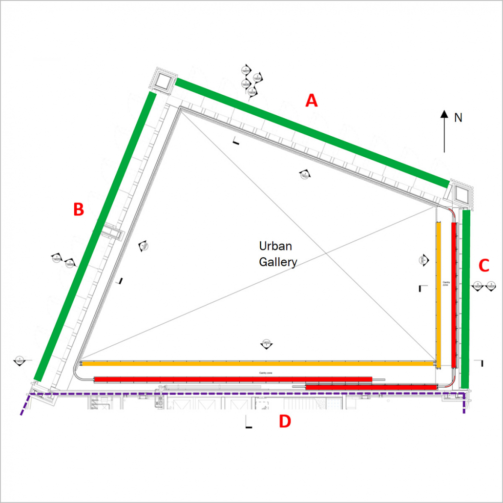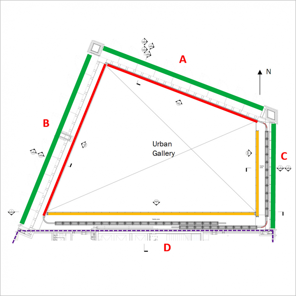 The Now Building is part of a wider project developed by Consolidated Developments, called Outernet — a £1bn reinvention of an entire block on Charing Cross Road that includes live venues, an hotel, bars and clubs. The Now Building was designed and constructed by third parties and a key part of it is the ‘urban gallery’: a space approximately 30m x 20m on plan with 16m clear height.