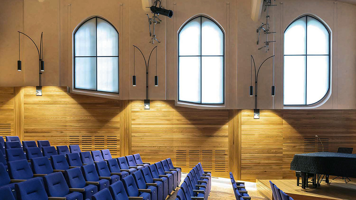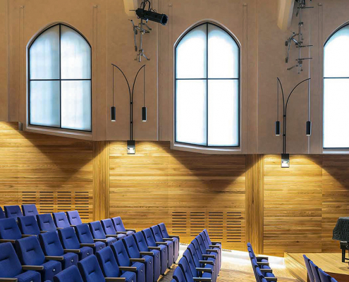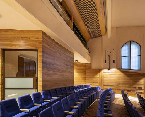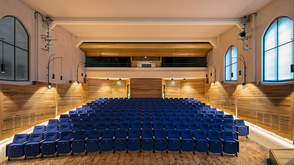 Projects have included the formation of a new café structure in a ‘found space’ in the rear courtyard, and refurbishment of the theatre’s auditorium, along with the creation of a naturally lit dressing room and investigation into the heritage roof structure to check the need for reinforcement.