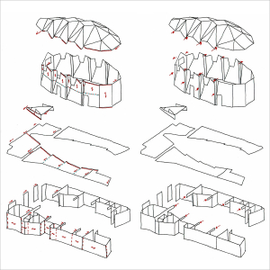 The building is founded on a reinforced concrete piled substructure. The timber superstructure was analysed using 3D finite element software to quantify the inherent in-plane stiffness of the two-way spanning CLT panels in the roof and the composite action with its glulam rib stiffeners.