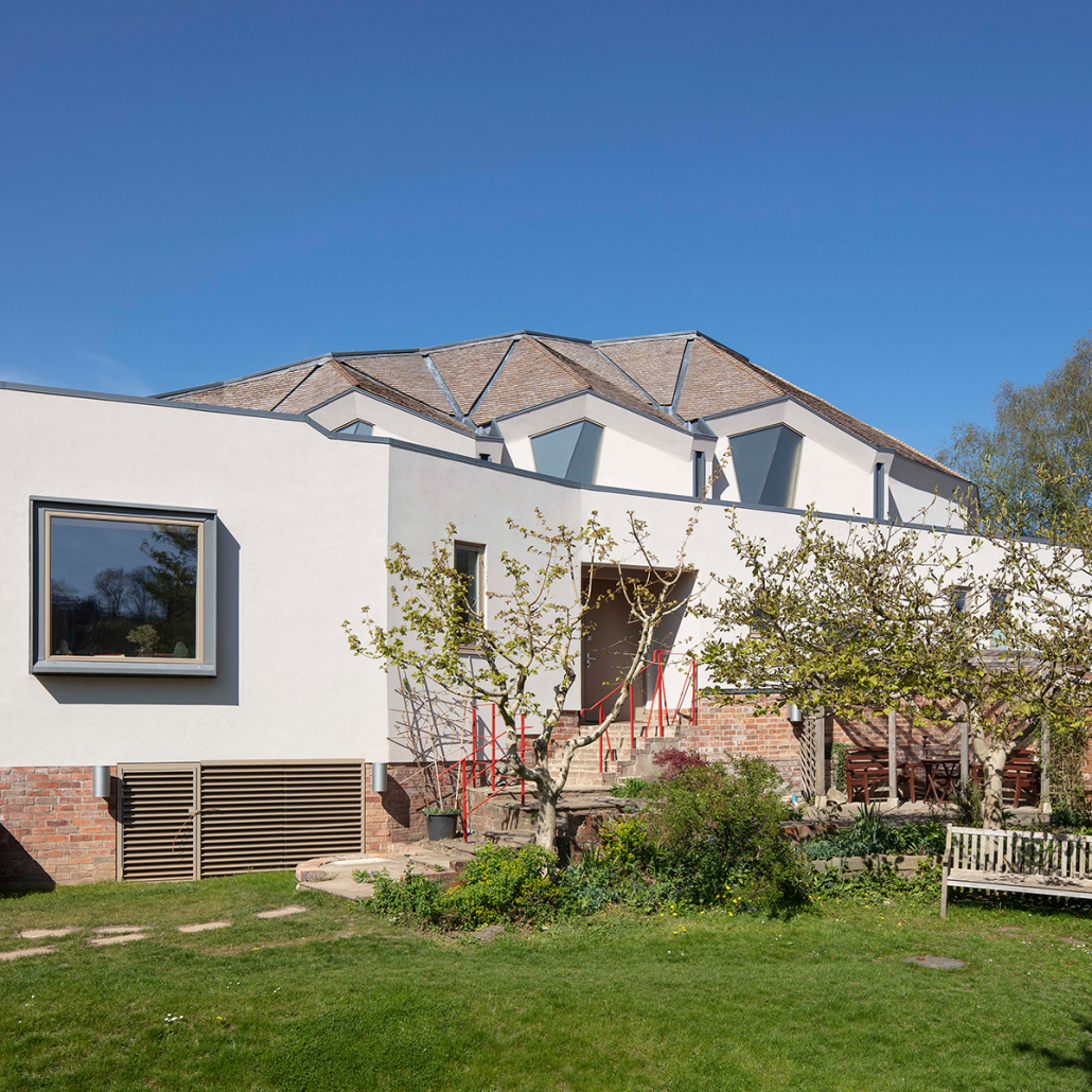Stroud Chapel is a new cross-laminated timber (CLT) and glulam structure, extending an existing building cluster. One wing of the range was demolished to make space for the new chapel. The original sacramental space (constructed 1968) was converted to social space, allowing the new chapel to be oriented east-west. Excellent acoustic performance for music and spoken word was key to the brief.