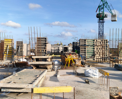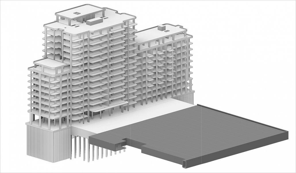The elegant curving Art Deco inspired concrete frame building comprises a 10 storey range with a further six storeys above the mid-section. The site’s height restrictions make our usual approach of designing the thinnest possible slabs, to minimise embodied carbon, particularly appropriate.