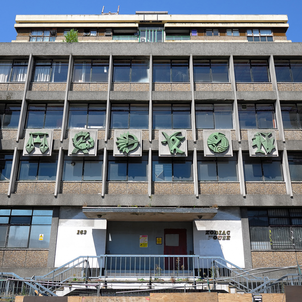 The striking Zodiac complex in Croydon’s London Road is undergoing redevelopment in several phases. The first phase, now completed, is an ambitious re-use project that has transformed the neglected commercial floors into 73 low-carbon emergency homes.